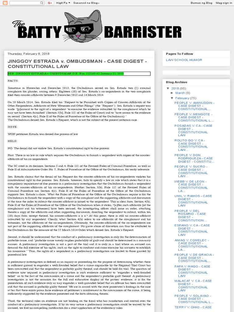The Batty Barrister Jinggoy Estrada V Ombudsman Case Digest Constitutional Law Probable Cause Evidence